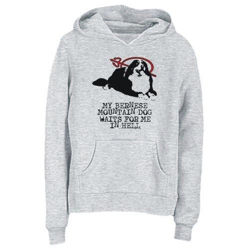 BEST DISCOUNT MY Bernese Mountain Dog WAITS FOR ME IN HELL Heather Gray Hoodie Womens Large